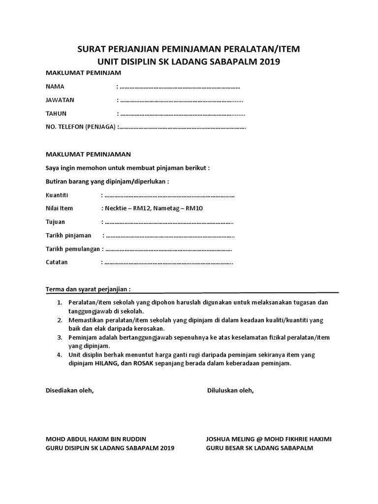 Surat Perjanjian Peminjaman Peralatan Pdf